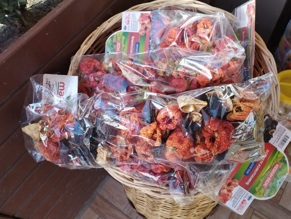 Yufka, mantı, erişte, kurutulmuş sebze ve turşu gibi ürünlerin yanı sıra köy tereyağı, peynir ve yoğurt çeşitleriyle Bahçekentlilerin mutfaklarına doğal tatlar kazandırıyor.