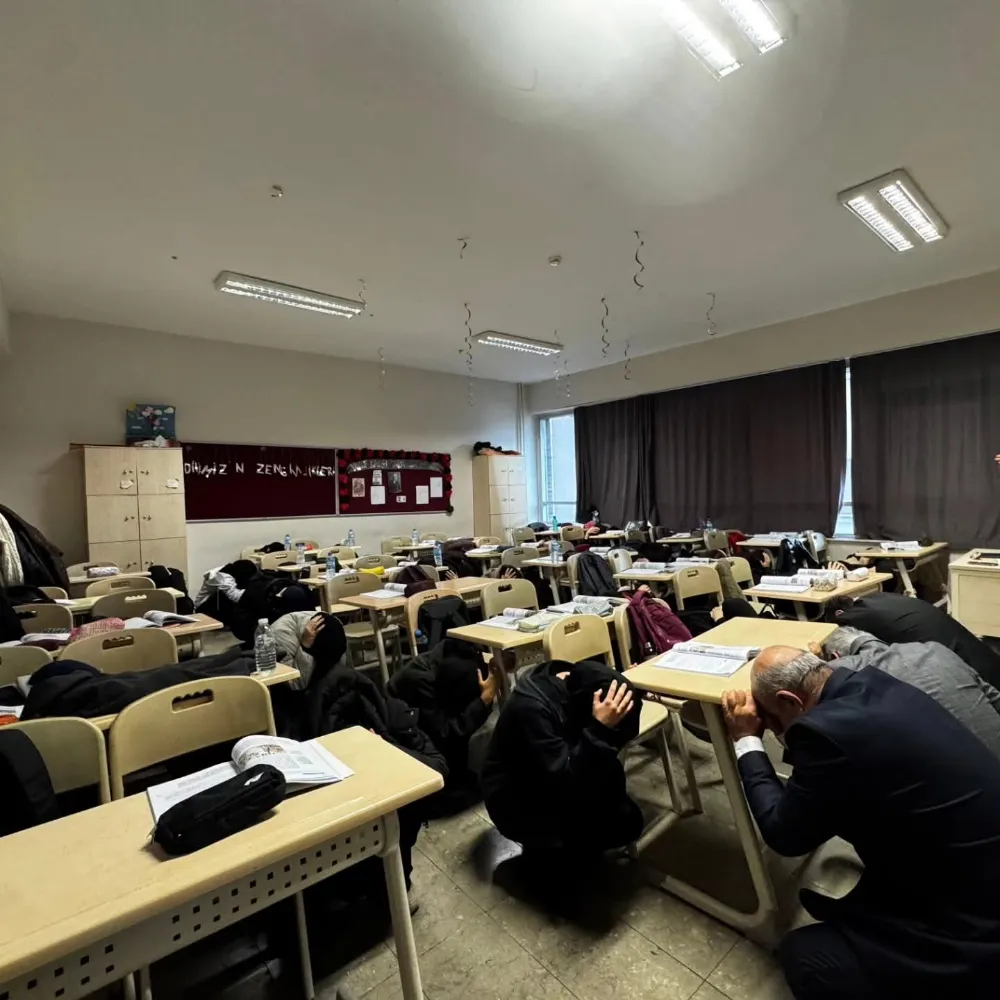 Okul bahçesinde yapılan değerlendirmede, olası bir afet anında doğru ve hızlı hareket etmenin hayati önemi bir kez daha öğrencilere anlatıldı. Program, 6 Şubat depremlerinde hayatını kaybedenler için dualar edilerek sona erdi.