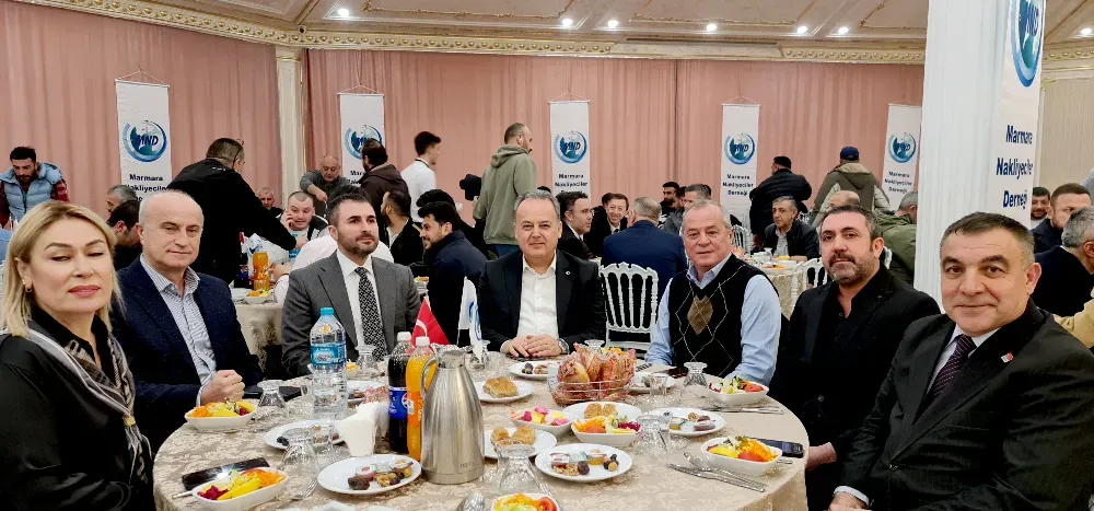 HABER / NEZİR KARAYÜN / BEYLİKDÜZÜ - Marmara Nakliyeciler Derneği Başkanı Halil Kanat, yönetim kurulu üyeleriyle birlikte dernek üyelerini ve Beylikdüzü protokolünü iftar programında ağırladı. Ramazan ayının manevi ikliminde gerçekleşen buluşma, hem sektörün sorunlarının konuşulduğu hem de birlik ve beraberlik mesajlarının verildiği anlamlı bir akşam olarak hafızalara kazındı.
