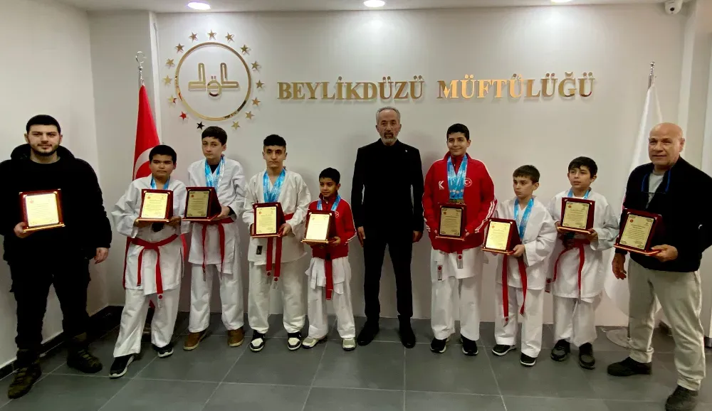 HABER / NEZİR KARAYÜN / BEYLİKDÜZÜ - Türkiye Karate Yıldızlar Ligi’nde önemli başarılar kazanan Beylikdüzü Diyanet Gençler Spor Kulübü sporcuları, antrenörleriyle birlikte Beylikdüzü İlçe Müftüsü Selami Sayın’ı makamında ziyaret etti. Bu özel kabulde, başarının gururu ve mutluluğu bir arada yaşandı.