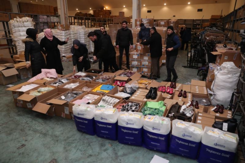 TIR'larla kışlık giyecek ve gıda kolileri gönderildi