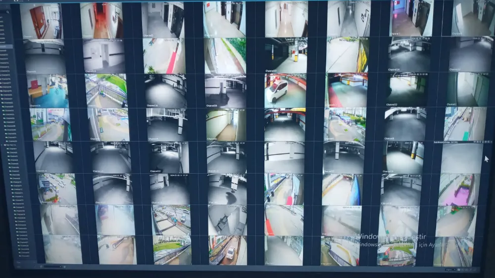 7/24 güvenliğimiz mevcuttur. 2 adet büyük kameralarımız var. Buralardan izlemesini yapıyoruz. Güvenliği ben geldiğimde 6 kişi idi. Yüzde 50 arttırarak 9 kişiye çıkardık. 112 kamera ile birlikte anlık olarak 7/24 izleme yapabiliyoruz. Burada kullandığımız betonları bile c30 betondan yaptık. İçinde demir var, 160 metre uzunluğunda. 90 bin lira sadece betona verdim. Ama kalıcı oldu. Bunların hepsini aldığımız aidatlardan karşıladım. Hiçbir ekstra ek ödeme çıkarmadım. Şimdi havuzlarımız kaldı. Sıra onlara geldi. Mart'ta havuzlara başlayacağız. Havuzları güzelleştireceğim ve içini boyayacağım.