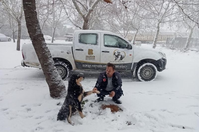 Balıkesir Büyükşehir Belediyesi soğuk ve karlı havalarda gıda bulmakta sıkıntı çeken sokak hayvanlarına yönelik besleme çalışmalarına aralıksız devam ediyor.