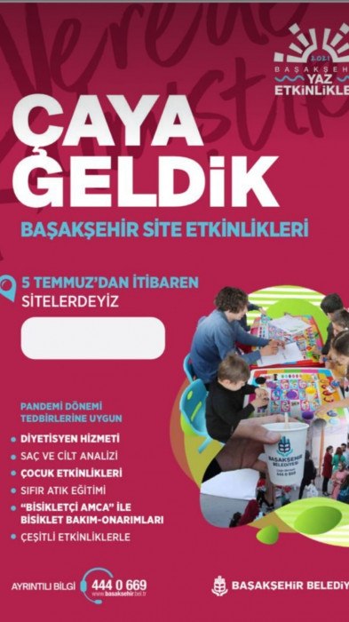 Basaksehir Belediyesi, komsuluk iliskilerini gelistirmek ve Basaksehirlilerle bir araya gelmek için “Çaya Geldik” projesini hayata geçirdi. Proje kapsaminda ilçe siniri içerisindeki sitelerde hafta içi her gün 13.00 - 17.00 saatleri arasinda etkinlikler düzenliyor.