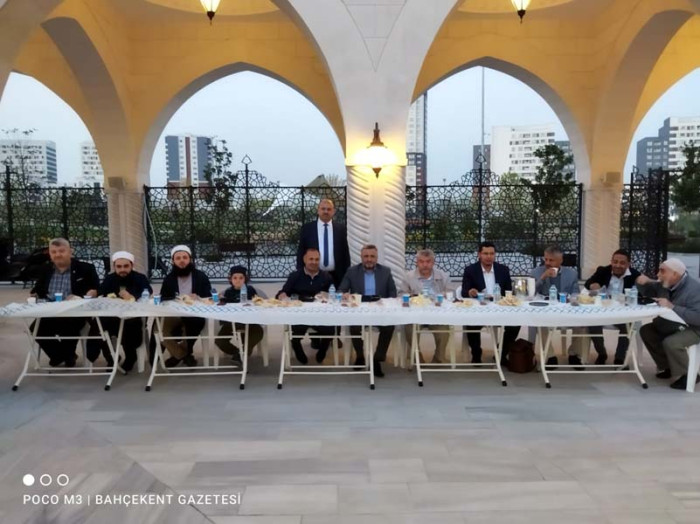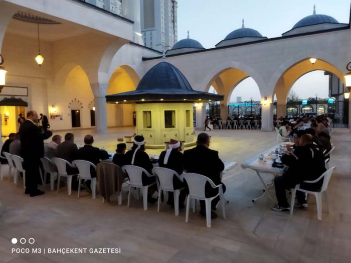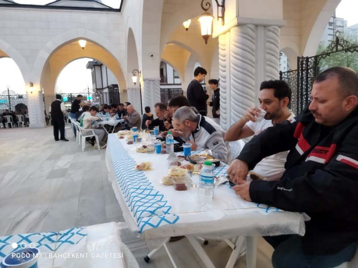 Emlak Konut Camii Din Görevlisi Asaf Ilter ile Din Görevlisi Oguzhan Yildirim, Ramazan ayinin ruhuna uygun olarak Bahçekent'te kardeslik baglarini güçlendirmek amaciyla Bahçekentlilere verilen iftarda cemaat ile birlikte iftarini açti.