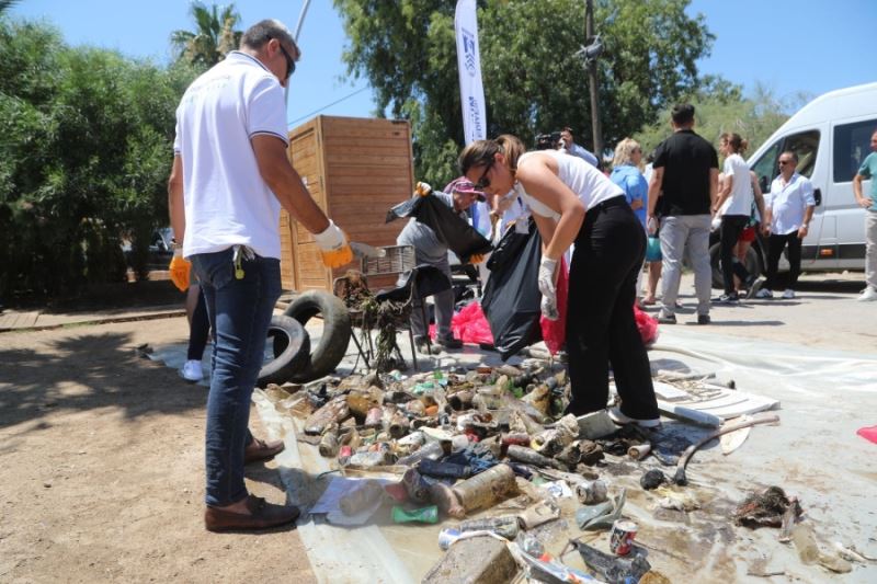 Yaklaşık bir saat süren deniz dibi temizliği çalışmasında, cam ve metal şişeler ile plastik, metal atıklar, balıkçı ağları ve araç lastiklerinden oluşan 200 kilograma yakın atık kıyıya çıkarıldı. Farkındalık yaratması için kıyıda bir süre sergilenen atık malzemeler, ekipler tarafından ayrıştırılarak Bodrum Belediyesi 1. Sınıf Atık Getirme Merkezi’ne götürüldü.