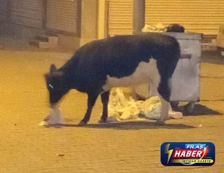 Neredeyse her noktada görünen başıboş inekler, çöp konteynerlerinde yiyecek arıyor.