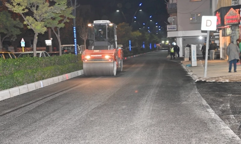 Manisa Büyükşehir Belediyesi, Şehzadeler ilçesi Kenzi Caddesi’ndeki prestij cadde düzenlemelerini hızla bitirmek için gece saatlerinde de çalışarak sıcak asfalt çalışmalarını tamamladı.